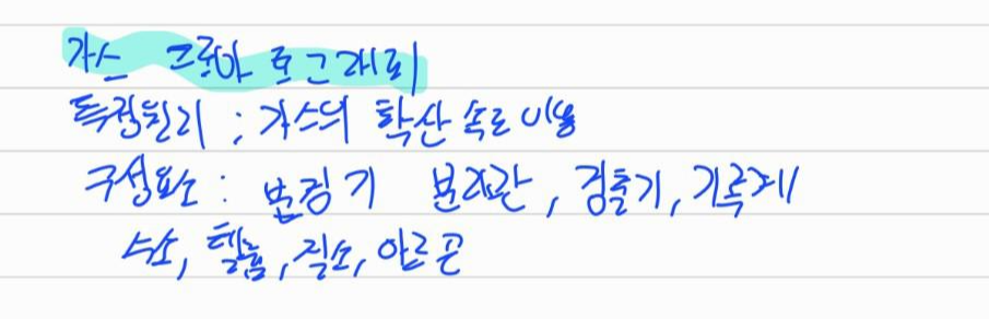 가스크로마토그래피에 대한 측정원리와 구성요소를 알아야 한다.