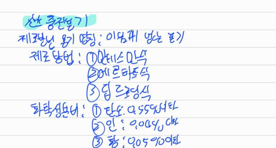 산소충전용기의 용기명칭, 제조방법, 화학성분비를 외워야한다.