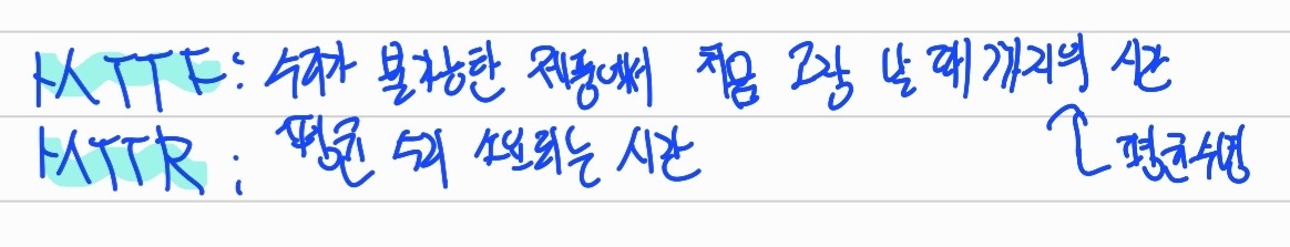 - MTTF: 수리가 불가능한 제품에서 처음 고장 날 때까지의 시간, 평균수명
