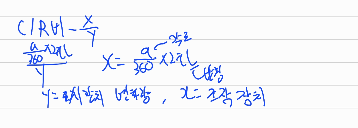 X=a(각도)*2*파이*지름/표시장치 변화량