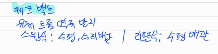 체크벨브는 유체흐름역류방지로 사용되며 스윙식, 리프트식으로 나뉜다.